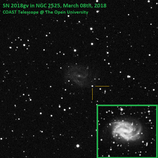 SN 2018gv has been discovered by Koichi Itagaki @ January 15th, 2018 16:21:06 UT in NGC 2525 with a brightness of 16.5 mag.