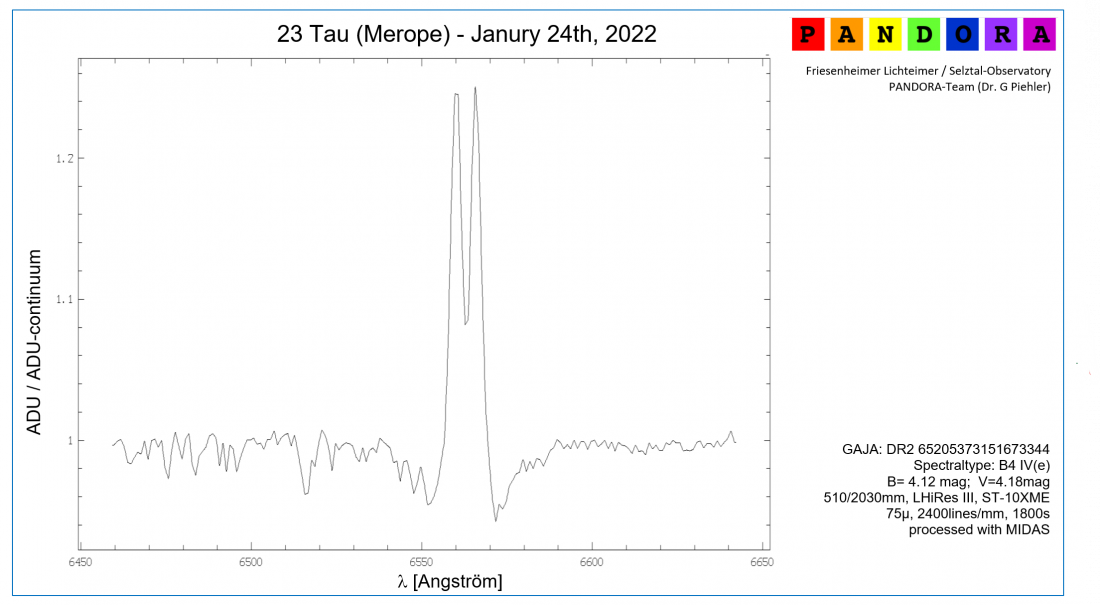 On January 24th, 2022, I got the chance to perform some observations. One of the targets was 23Tau. I performed a spectra in medium resolution around the H-Alpha line.