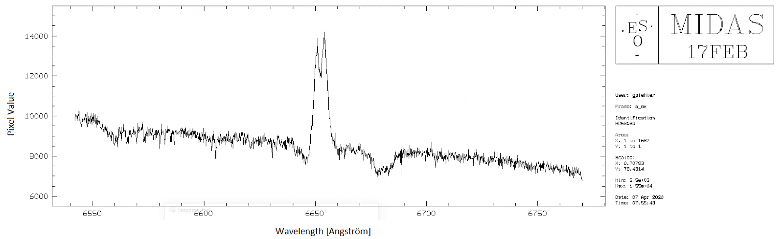 RAW data for spectrum of HD 58080, H-Alpha